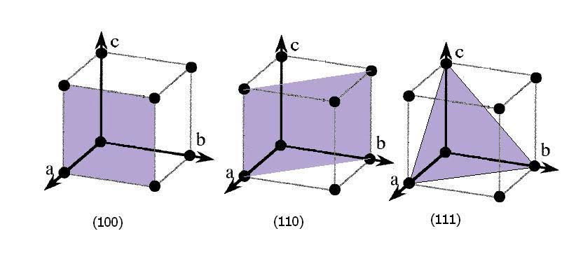 The (100), (110) and (111) planes in a Cubic Crystal. Source : ResearchGate |